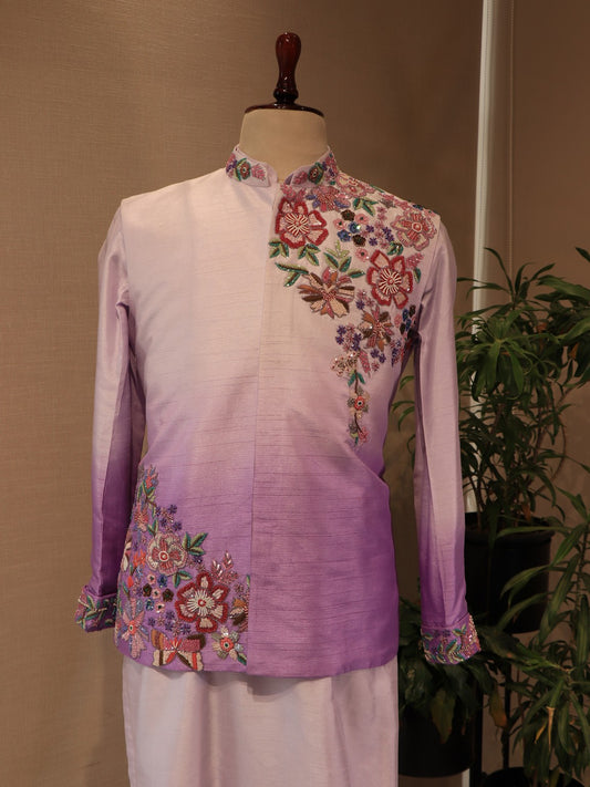 Lavander embroidered mens indo western