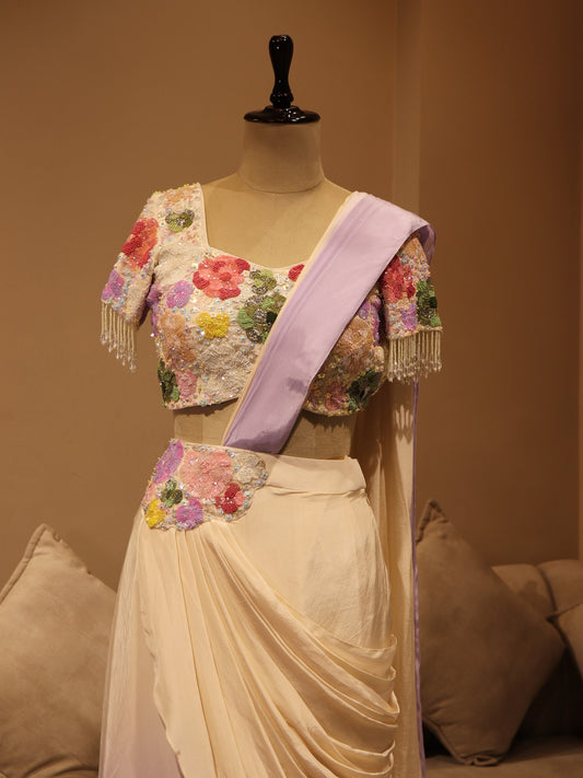 lilac off white shaded drape saree