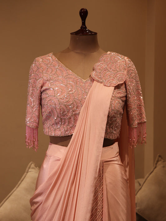 Blush pink drape saree