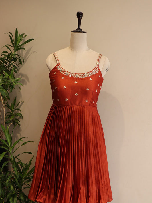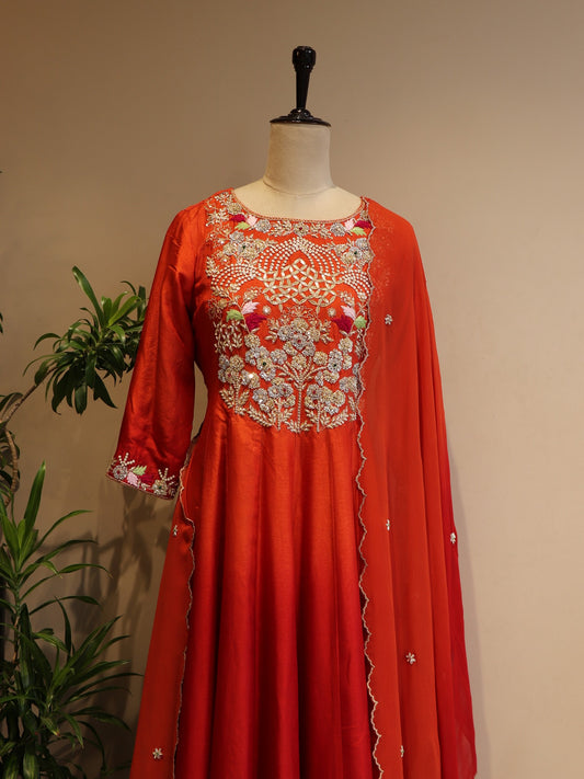 Rust orange red shaded anarkali pants duaptta