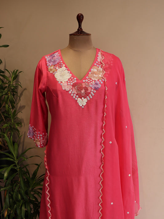 Pink embroidered kurta pants dupatta