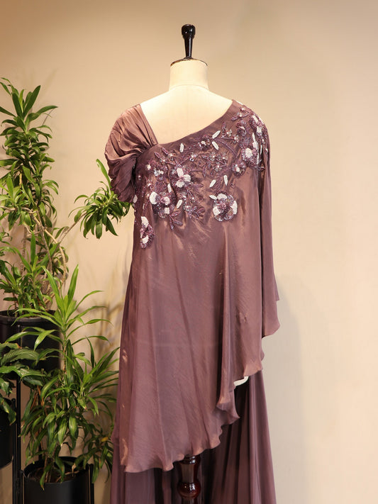mauve embroidered cape top with palazo