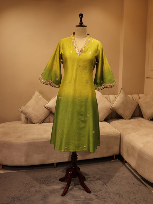 Parrot green shaded kurta pants dupatta