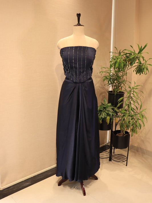 Deep navy blue corset cape with skirt