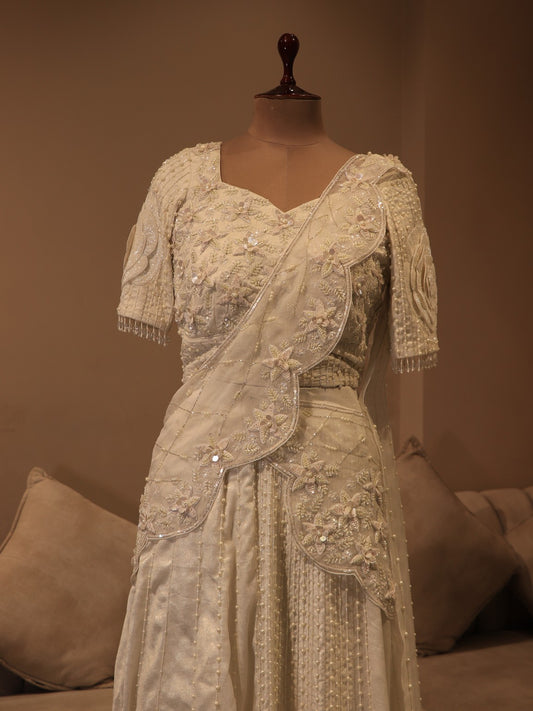 Pearl white 3d embroidered lehenga set