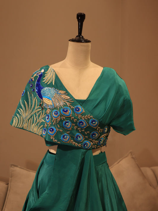 Turquoish green peacock cape top skirt set