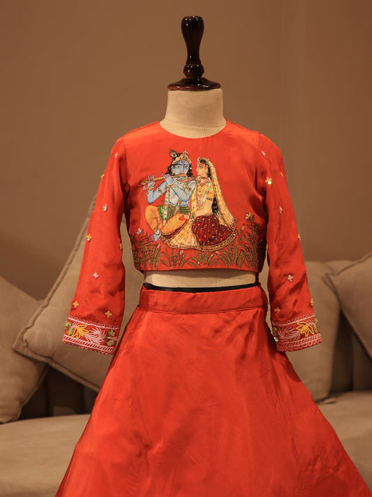 Rust orange radha krishna ji kid dress
