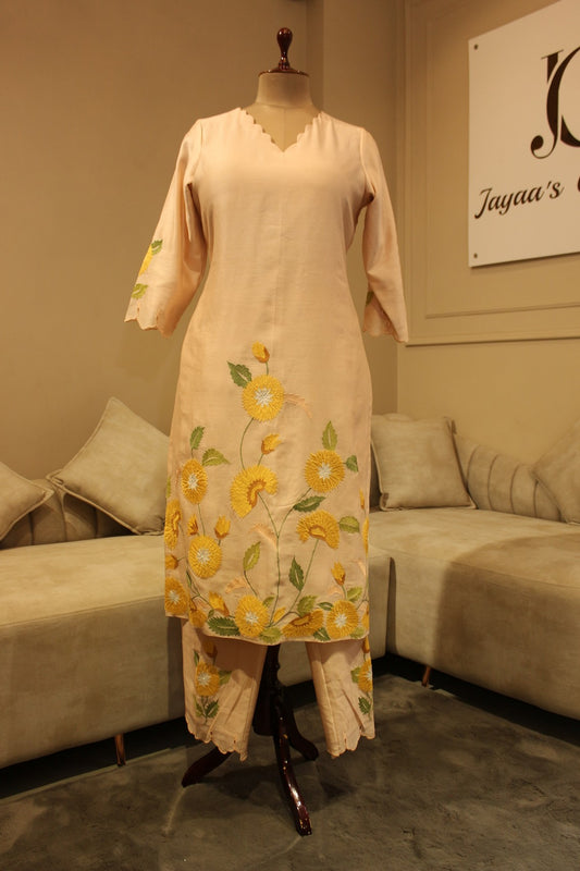 Pichwai shreenath ji Pastel peach shaded mens neheru jacket with kurta pants