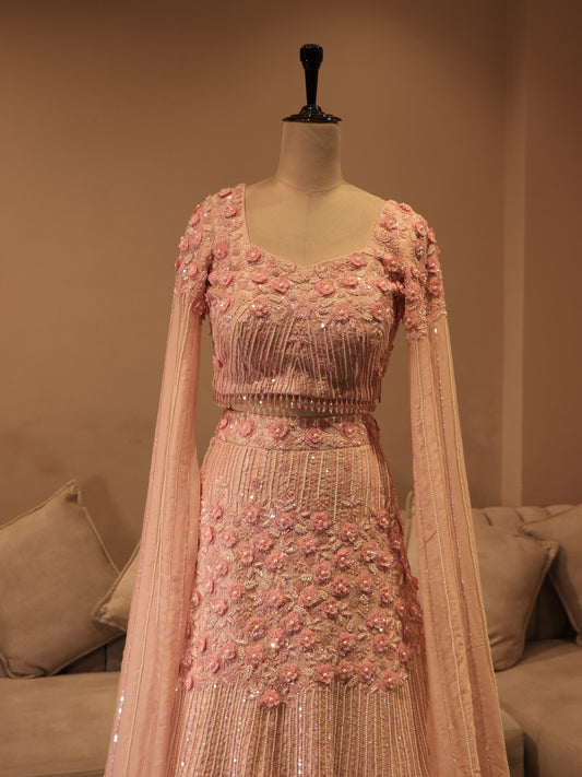 Mauve shaded cape top lehenga set