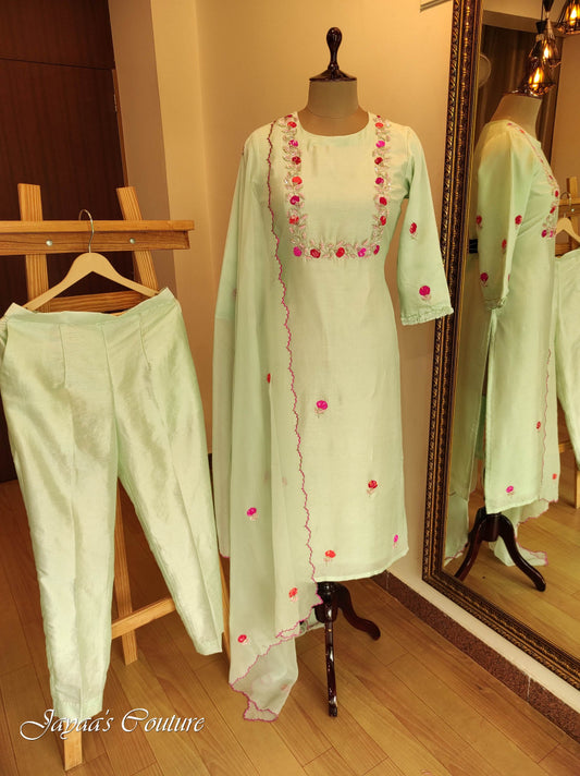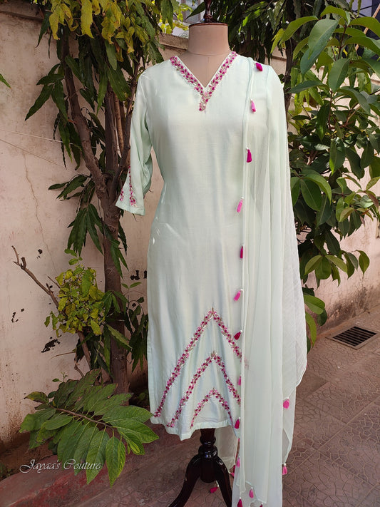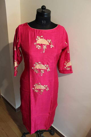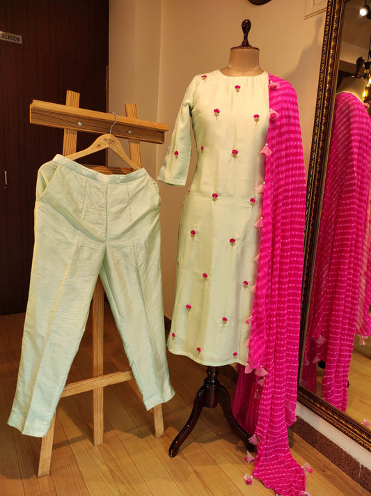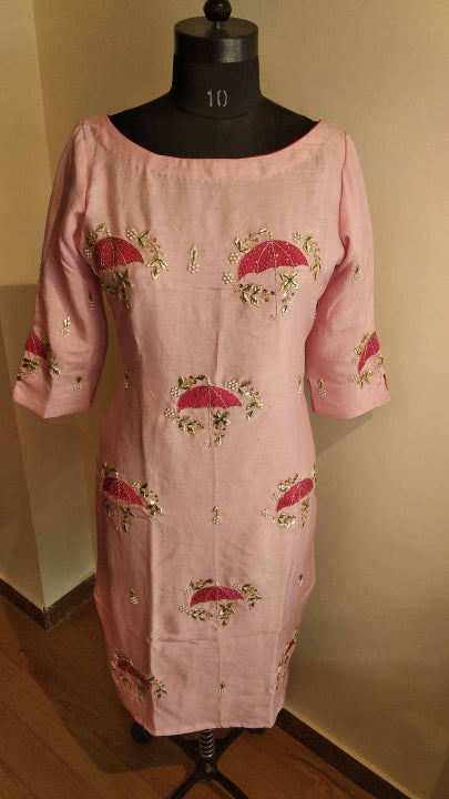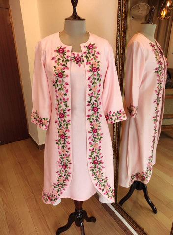 pink Kurta pants with Bandej jacket Adorned with pitta work.