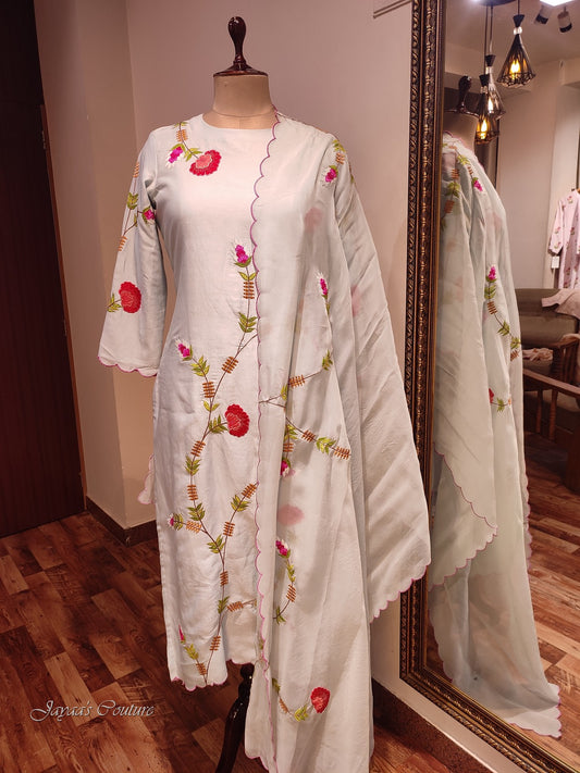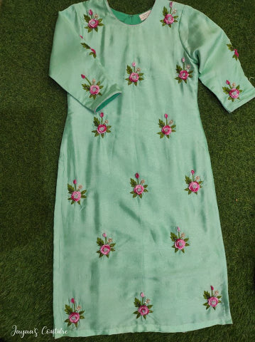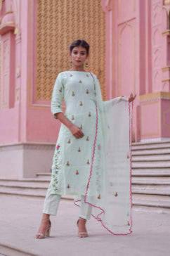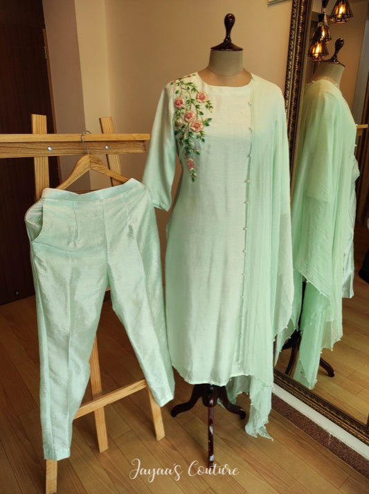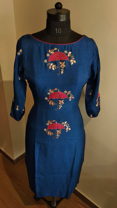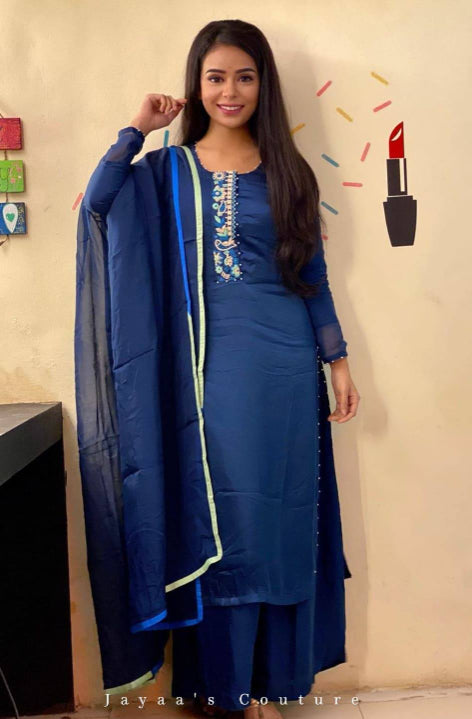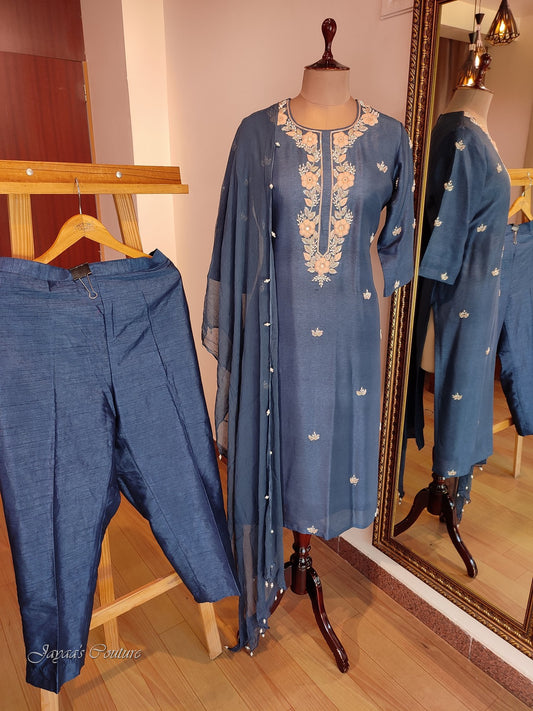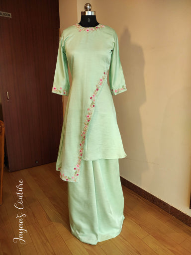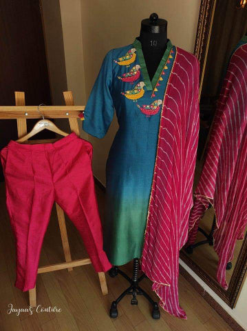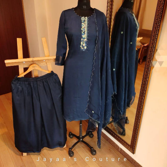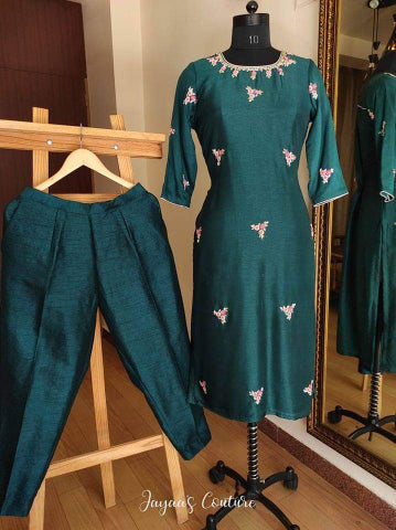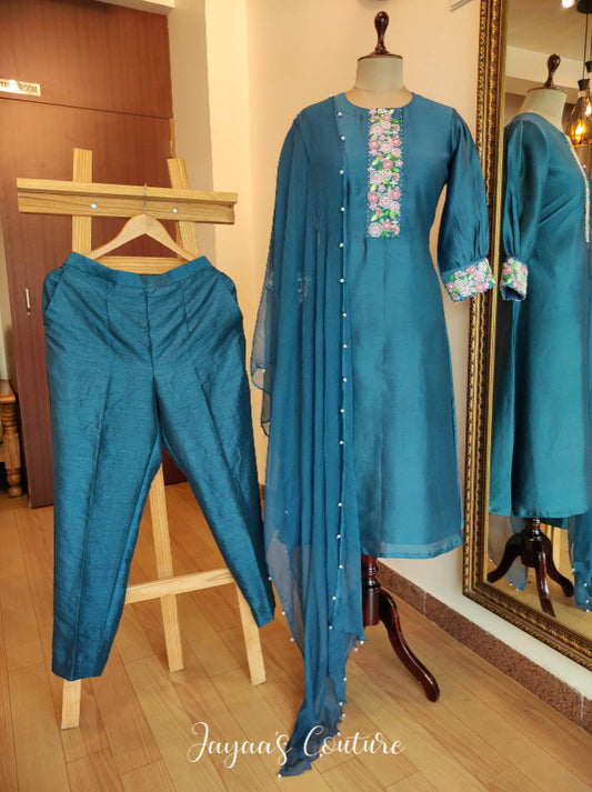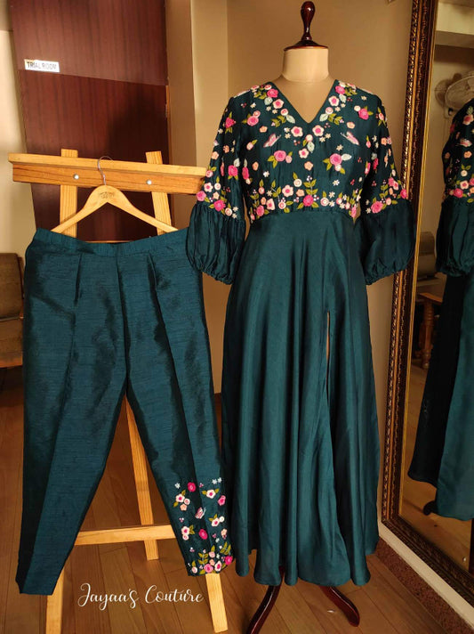 Peacock Blue Umbrella Work Kurta Pants Set.