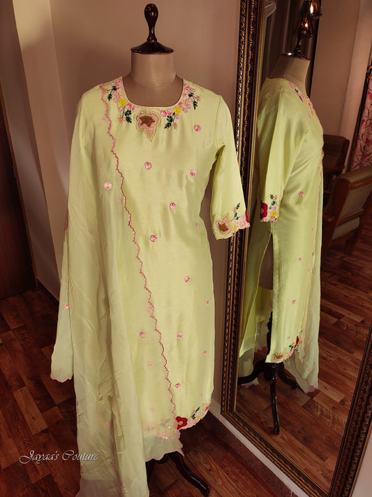 Lyril green kurta pants with dupatta