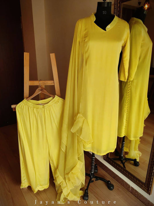Lemon Yellow Umbrella work Kurta Pants Set