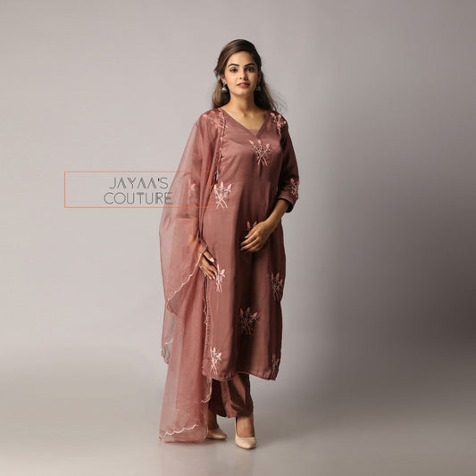 Marronish brown kurta pants dupatta