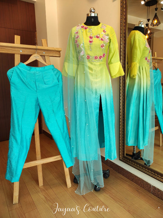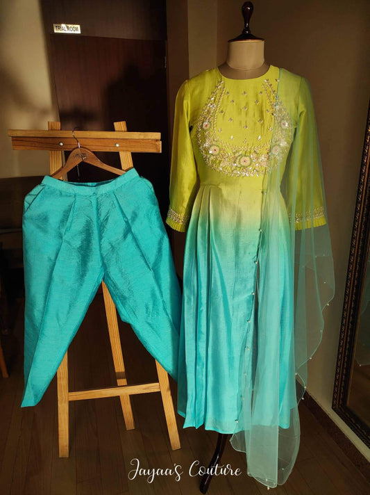 Liril green to sky blue shied kurta pants & dupatta