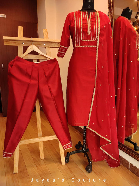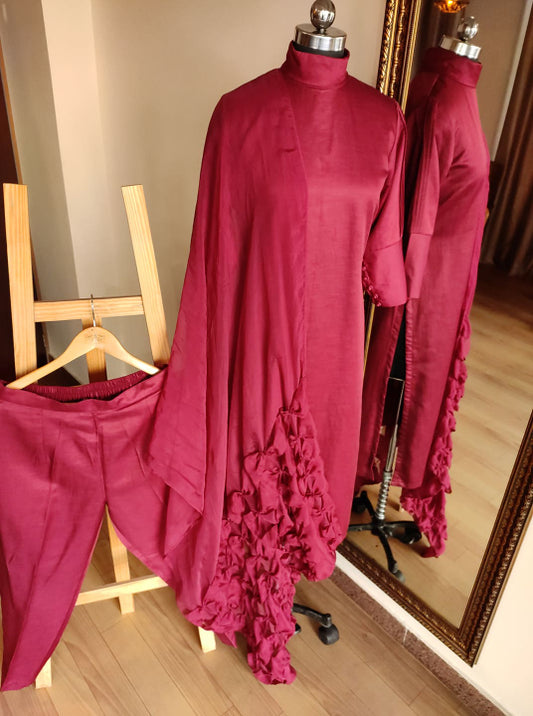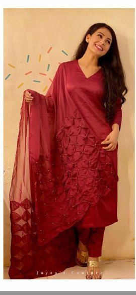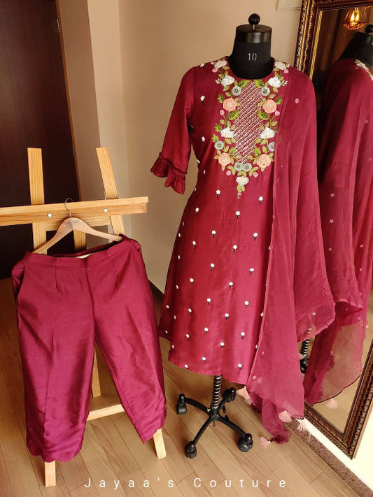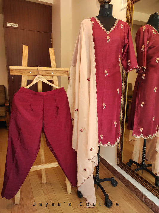 Maroon Kurta Pants Dupatta Set