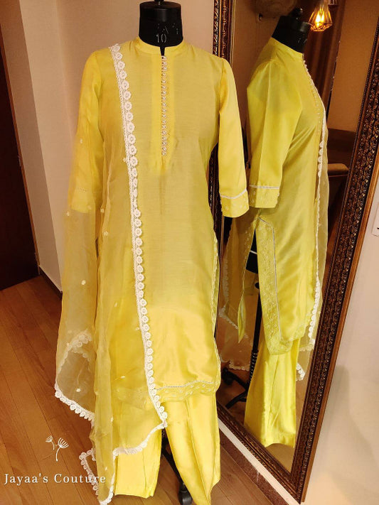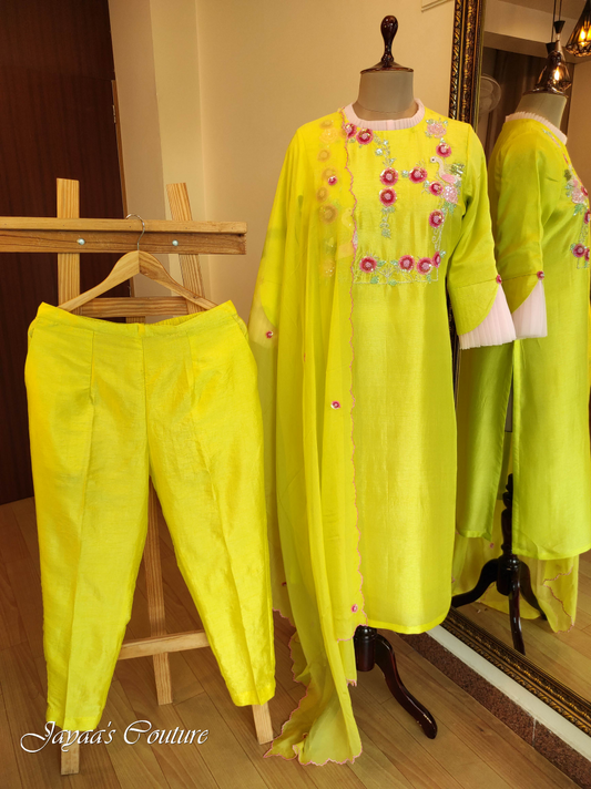 lemon yellow shaded kurta with pants and dupatta