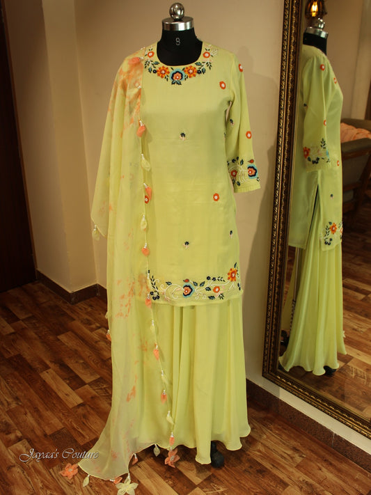 Lime yellow kurta sharara and dupatta