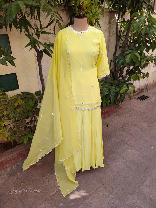 Lemon yellow kurta with sharara
