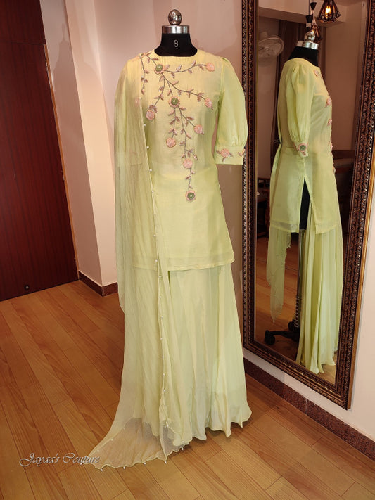 Liril green kurta with flared plazo and dupatta