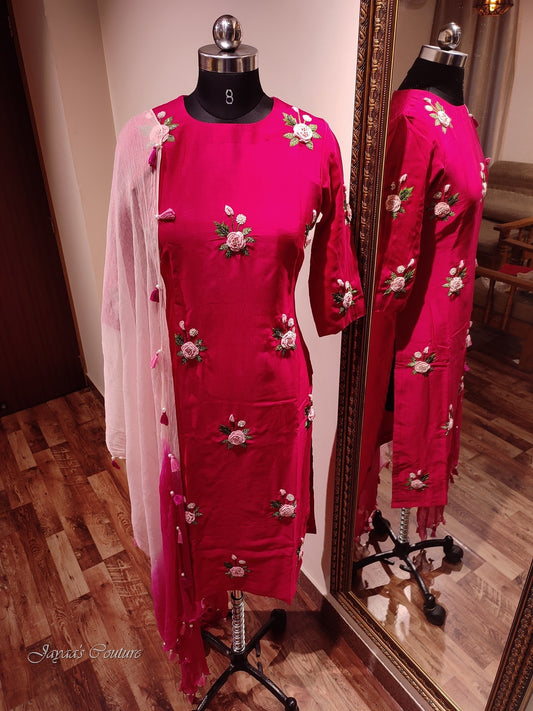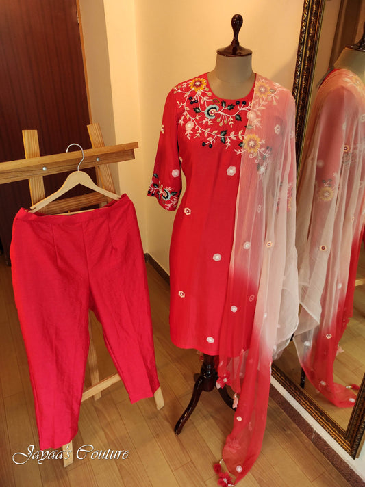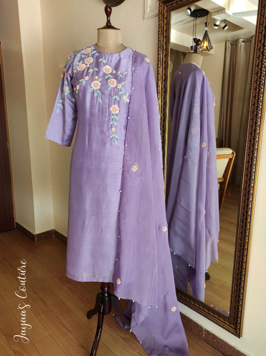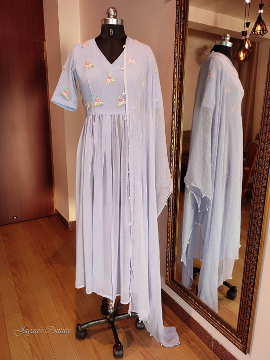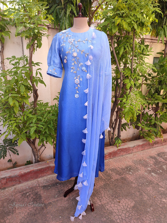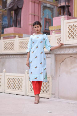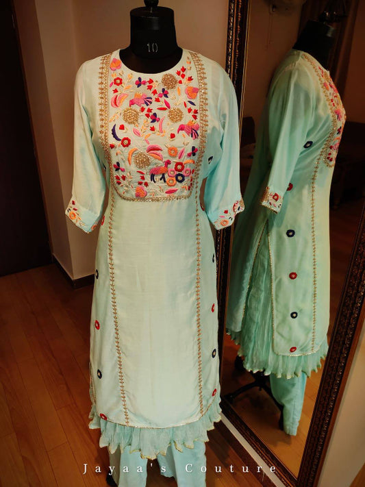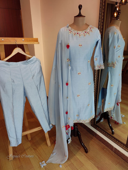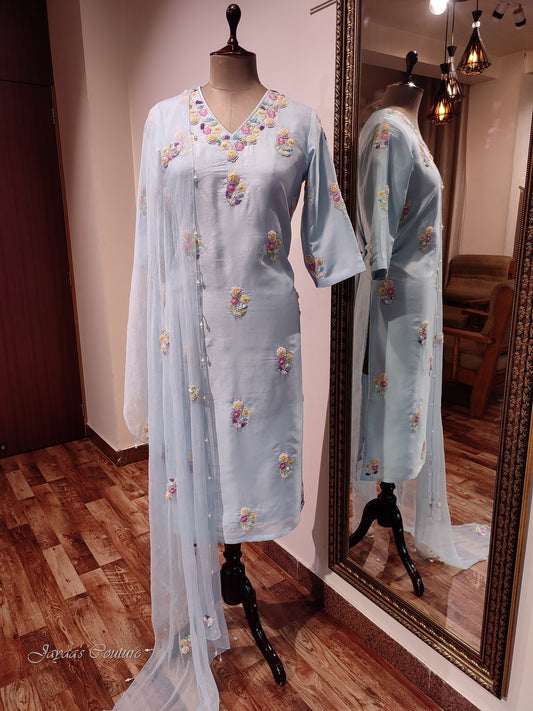 Powder blue Kurta With Center Slit & Pants & dupatta