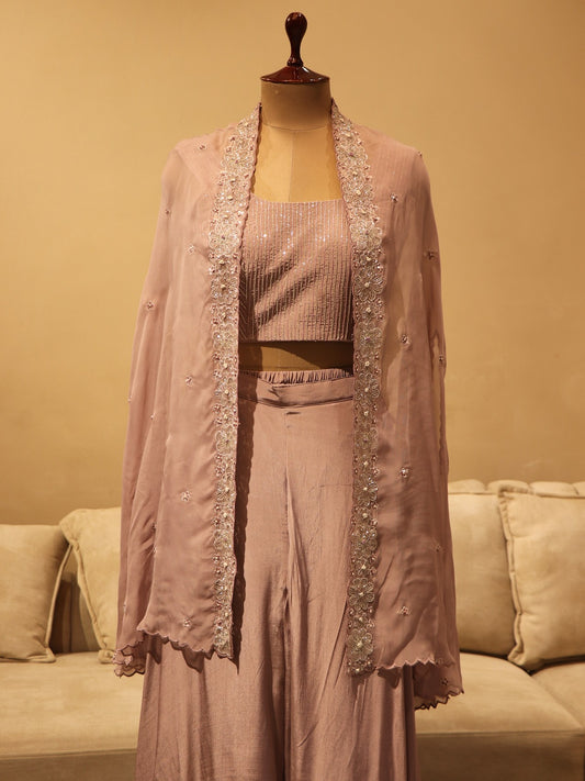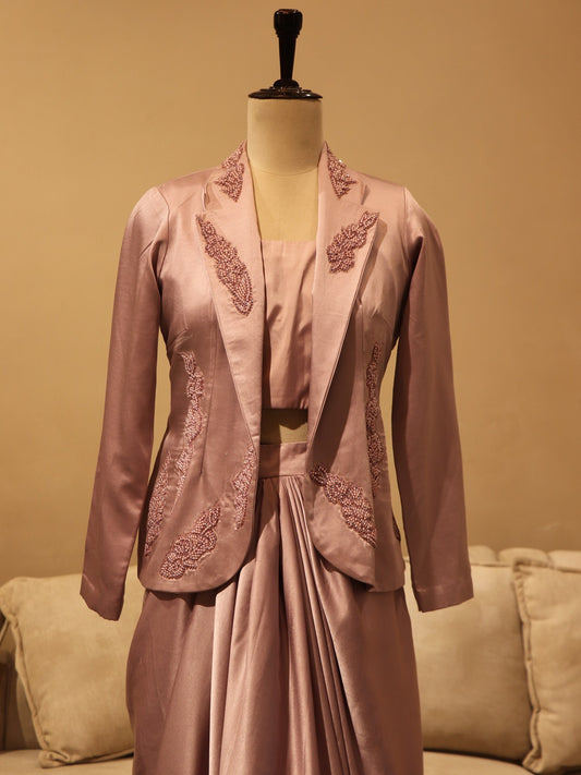 Peach shaded peacockhand painted mens neheru jacket kurta pants