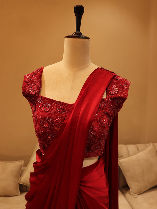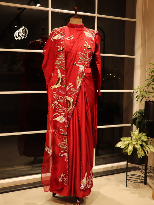 Hot red pre drape saree