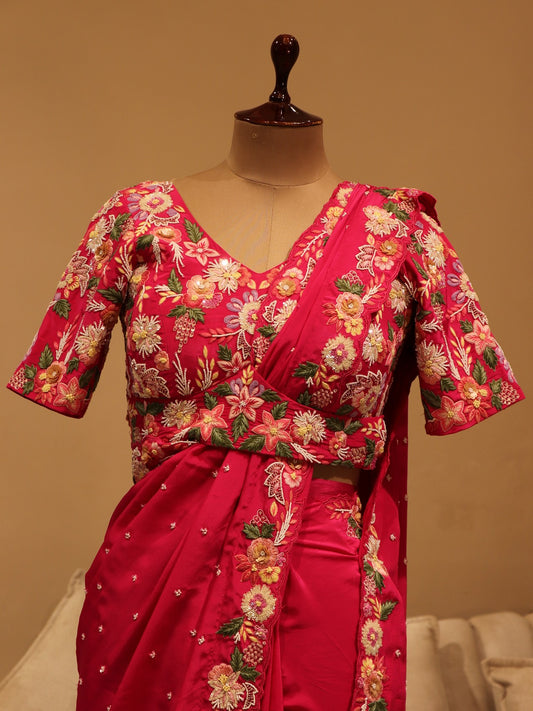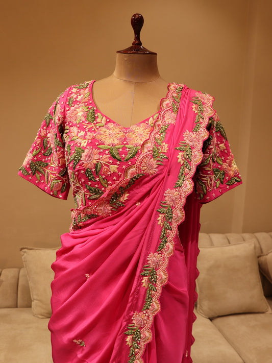 Fuscia pink embroidered saree