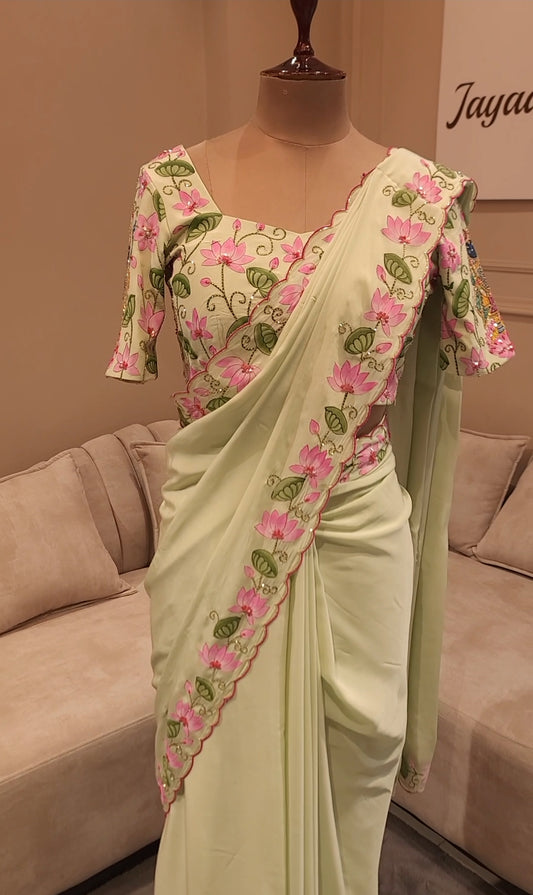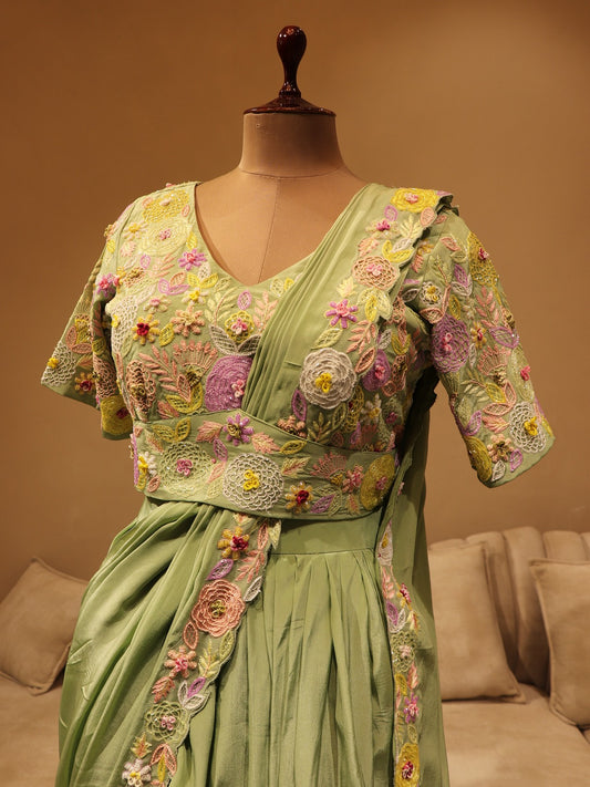 Mint green drape saree