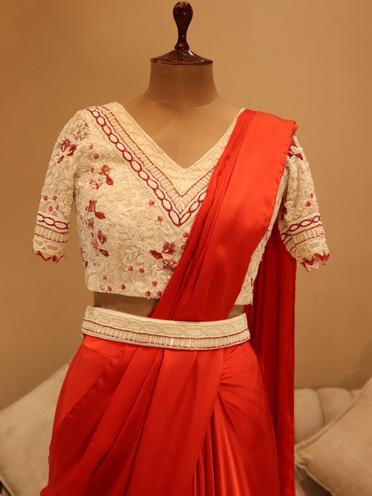 Hot red pre drape saree with dupatta