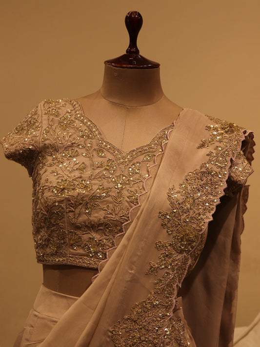 Beige pre-drape saree