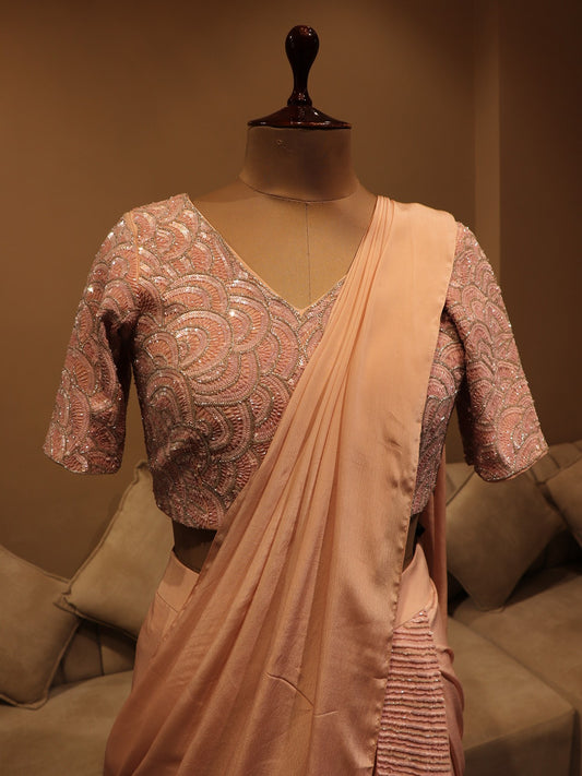 Pastel peach pre drape saree