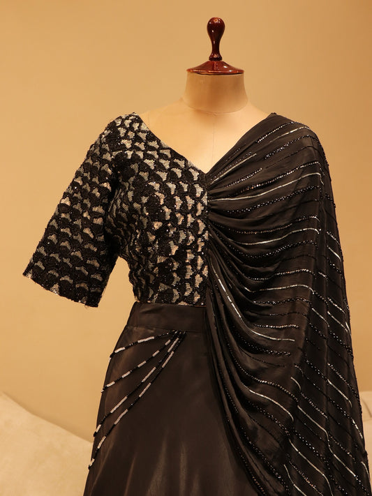 Black 3d flowers lehenga