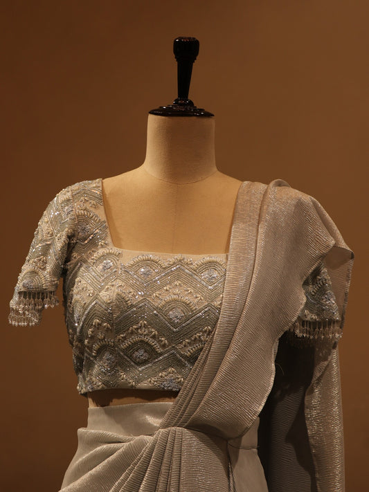 metallic grey drape saree