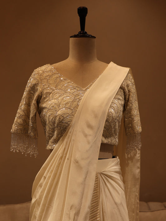 Pearl white drape saree