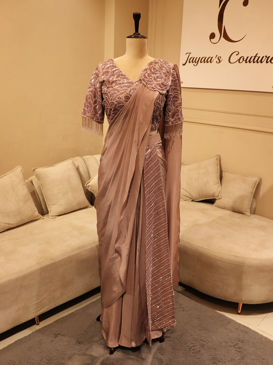 Dark mauve drape saree