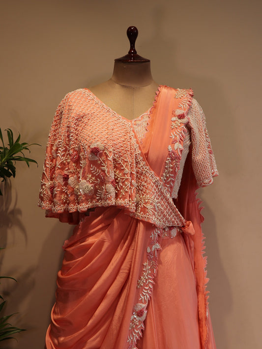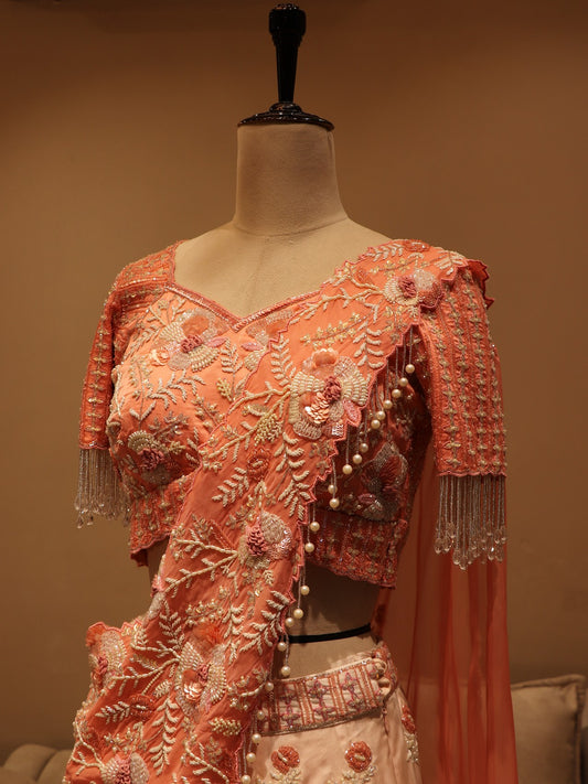 Peach drape cape lehenga