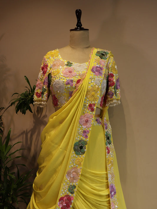 Lemon yellow drape lehenga