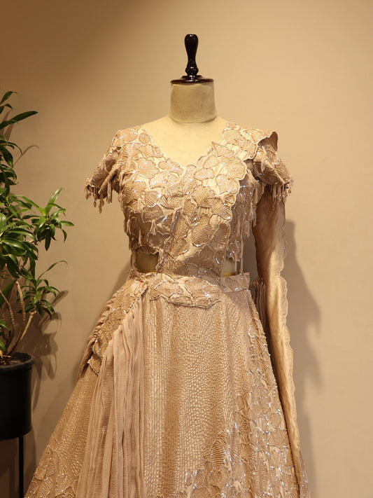 Rose gold beige embroidered lehenga set