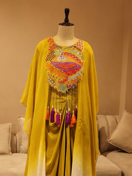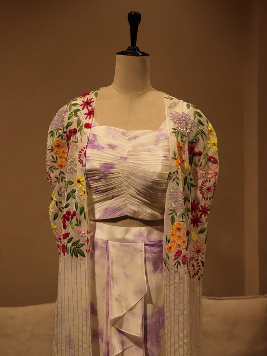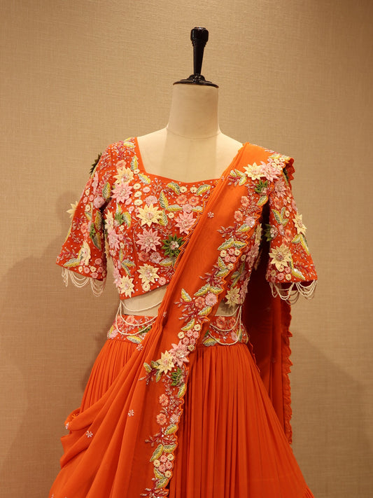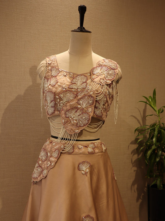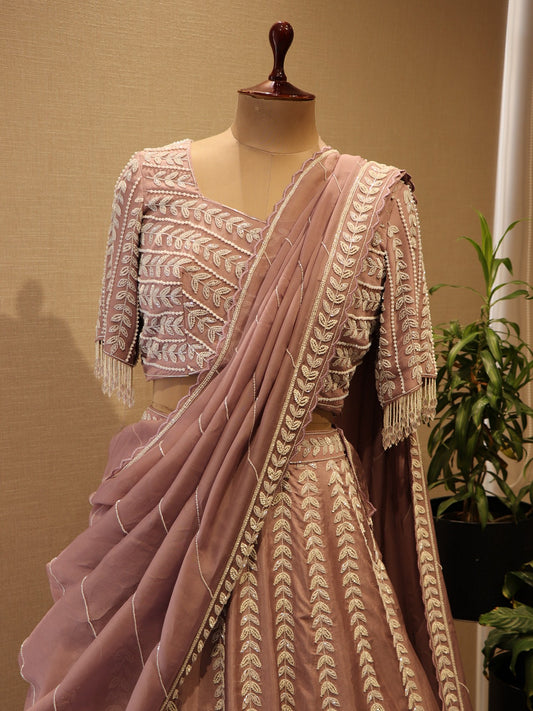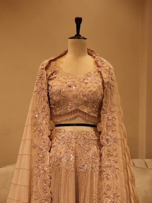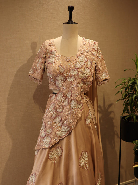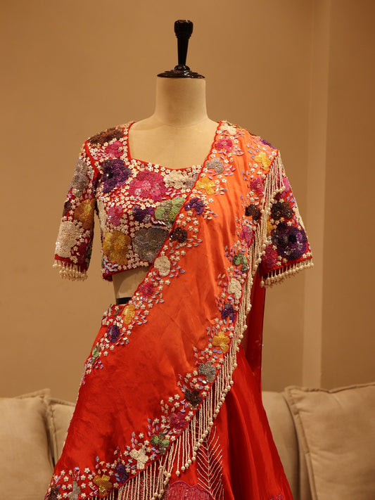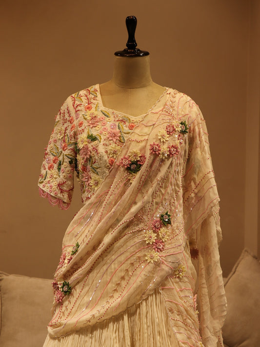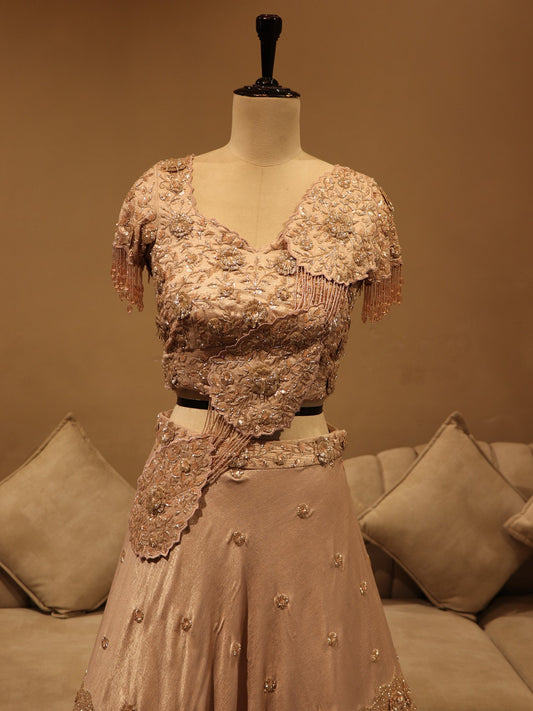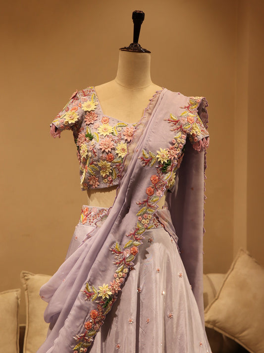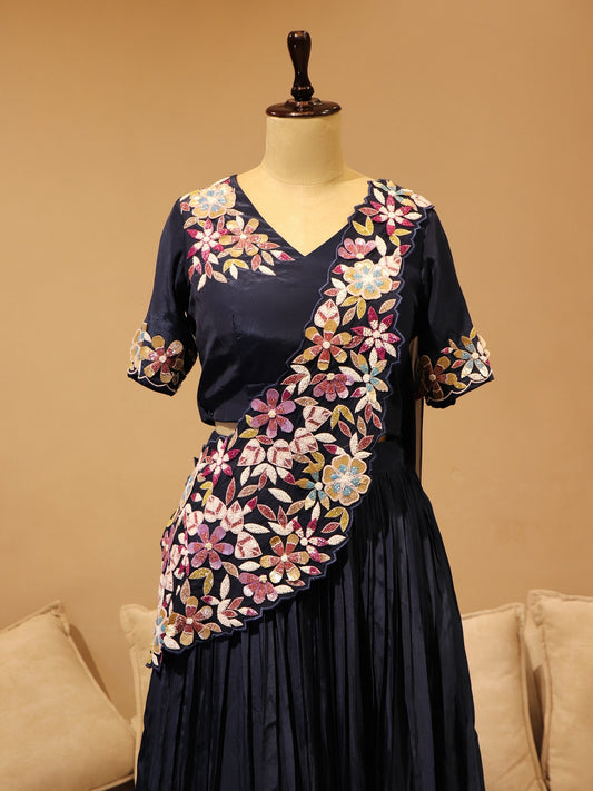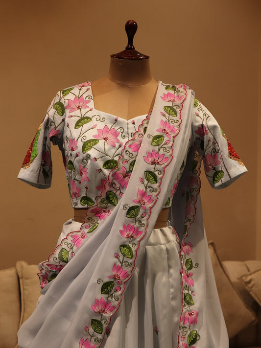 blue shaded radha krishna ji pichwai hand painted lehenga set