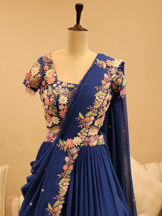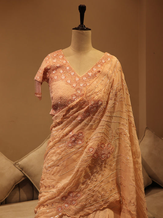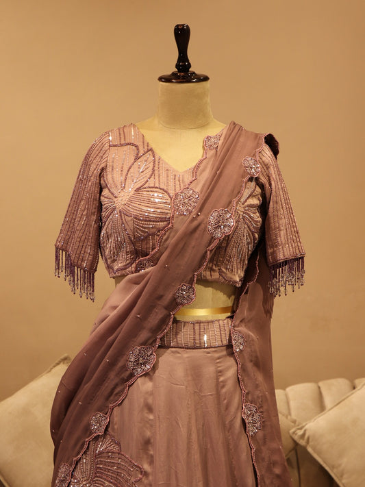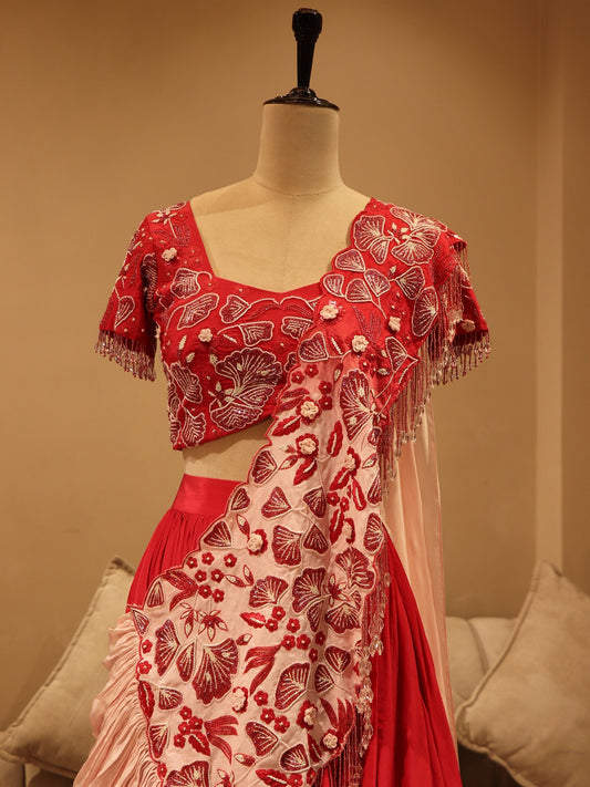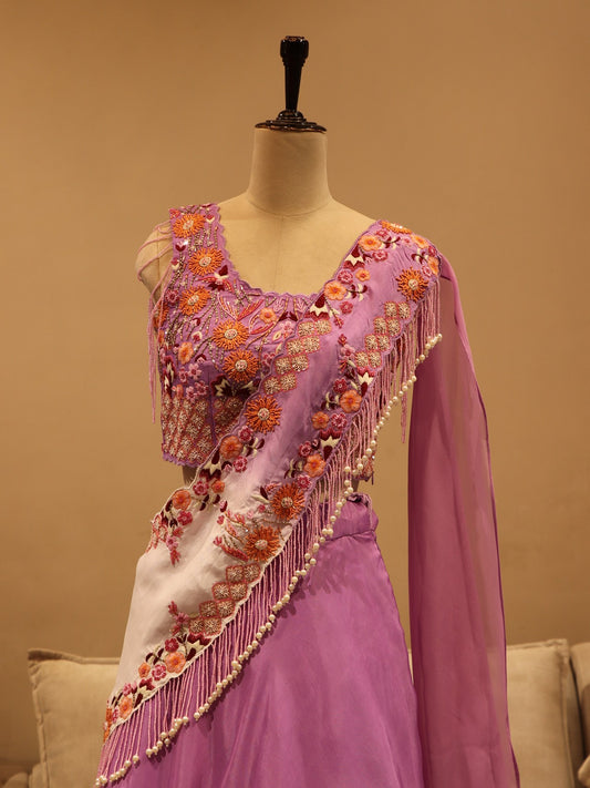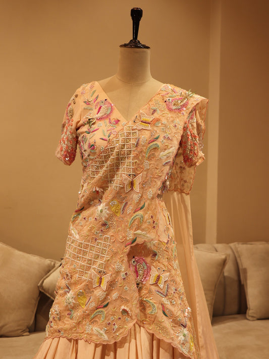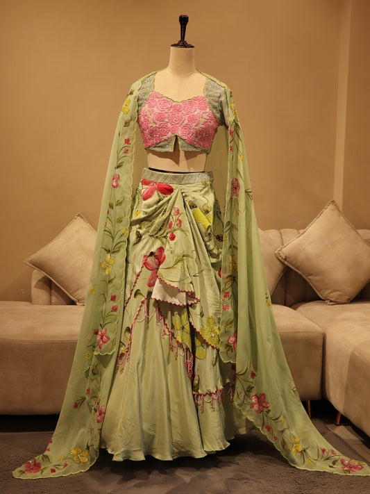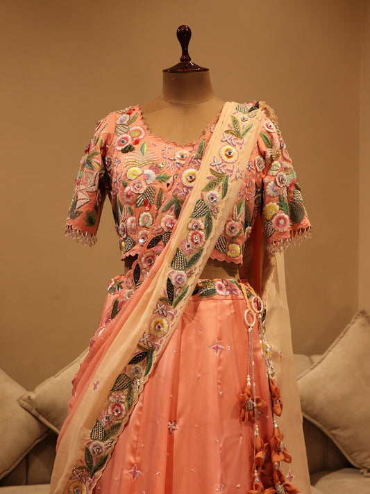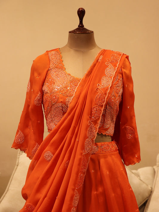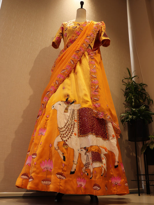 pichwai radha krishnaji orange shaded hand painted lehenga set