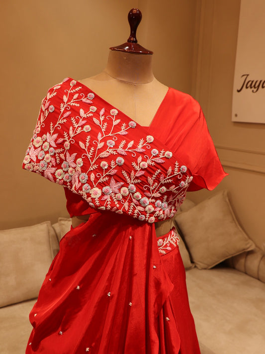 Hot red drape lehenga