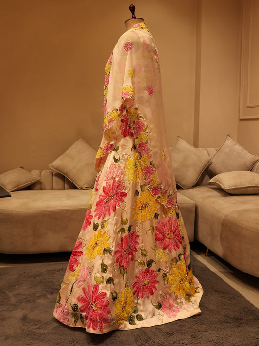 Pastel peach hand painted lehenga set