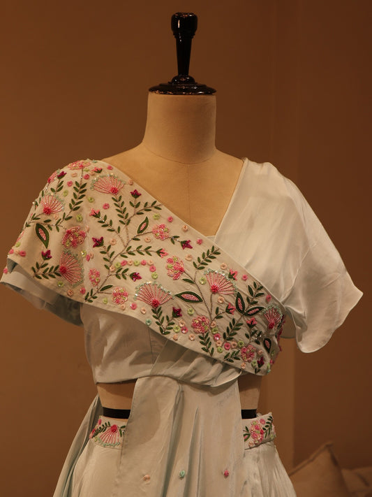 Powder blue drape lehenga set