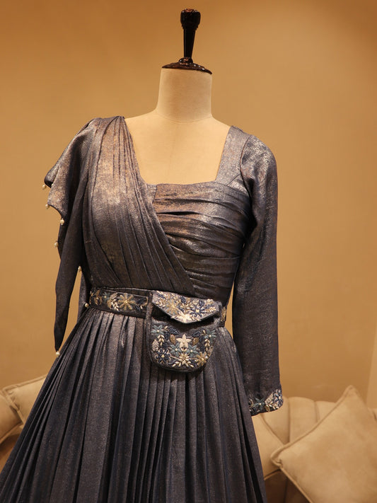 blue shimmer gown with belt