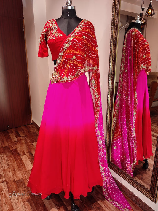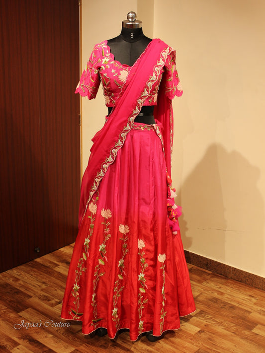 Red rani shaded lehenga set