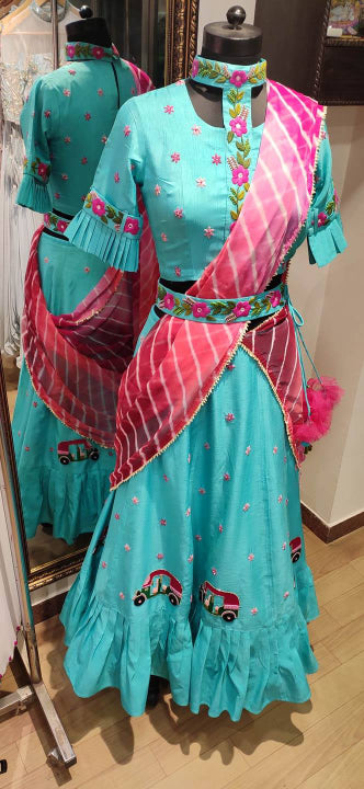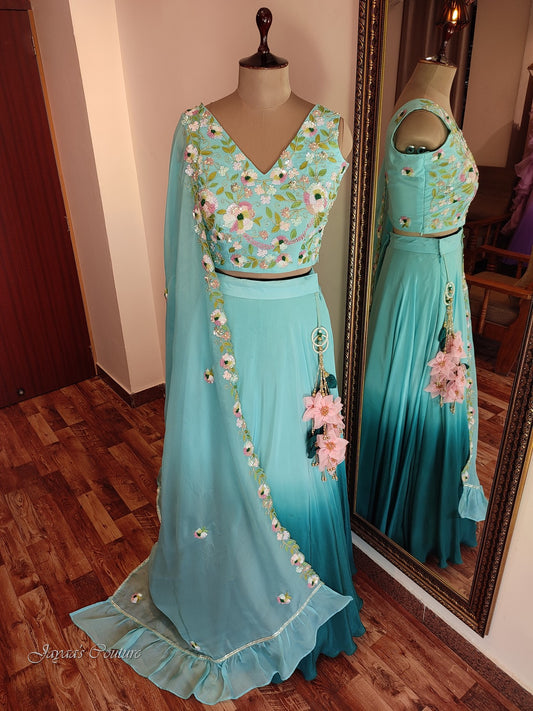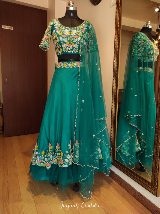 Teal Blue Layered Lehenga set