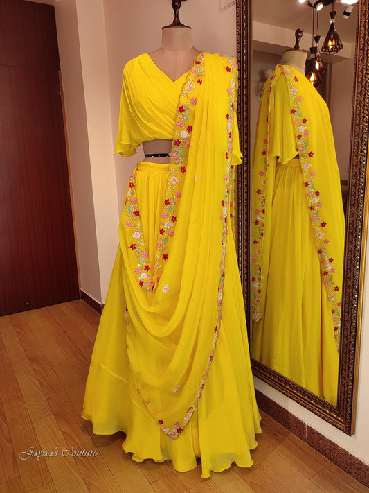 Yellow crop top lehenga dupatta