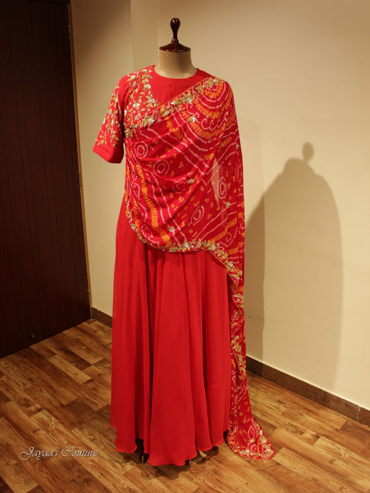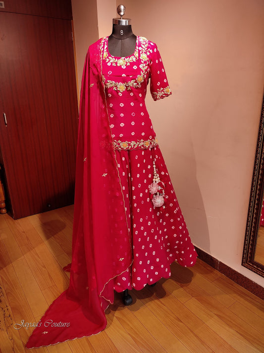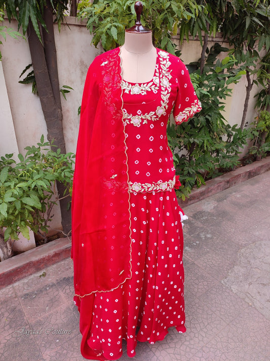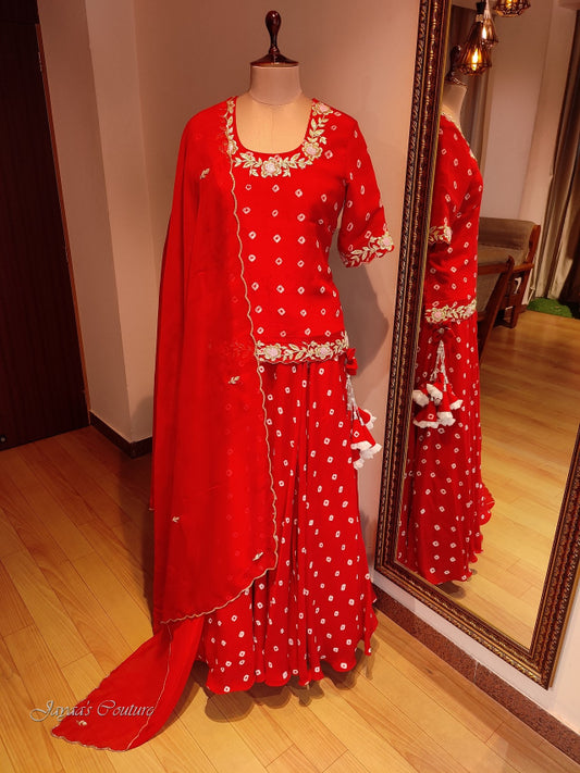 Red bandhej lehenga set with dupatta