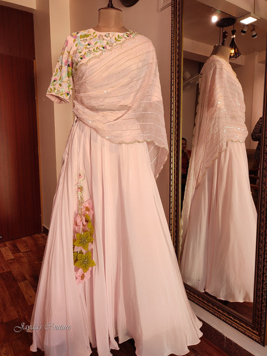 Powder pink lehenga set with drape dupatta